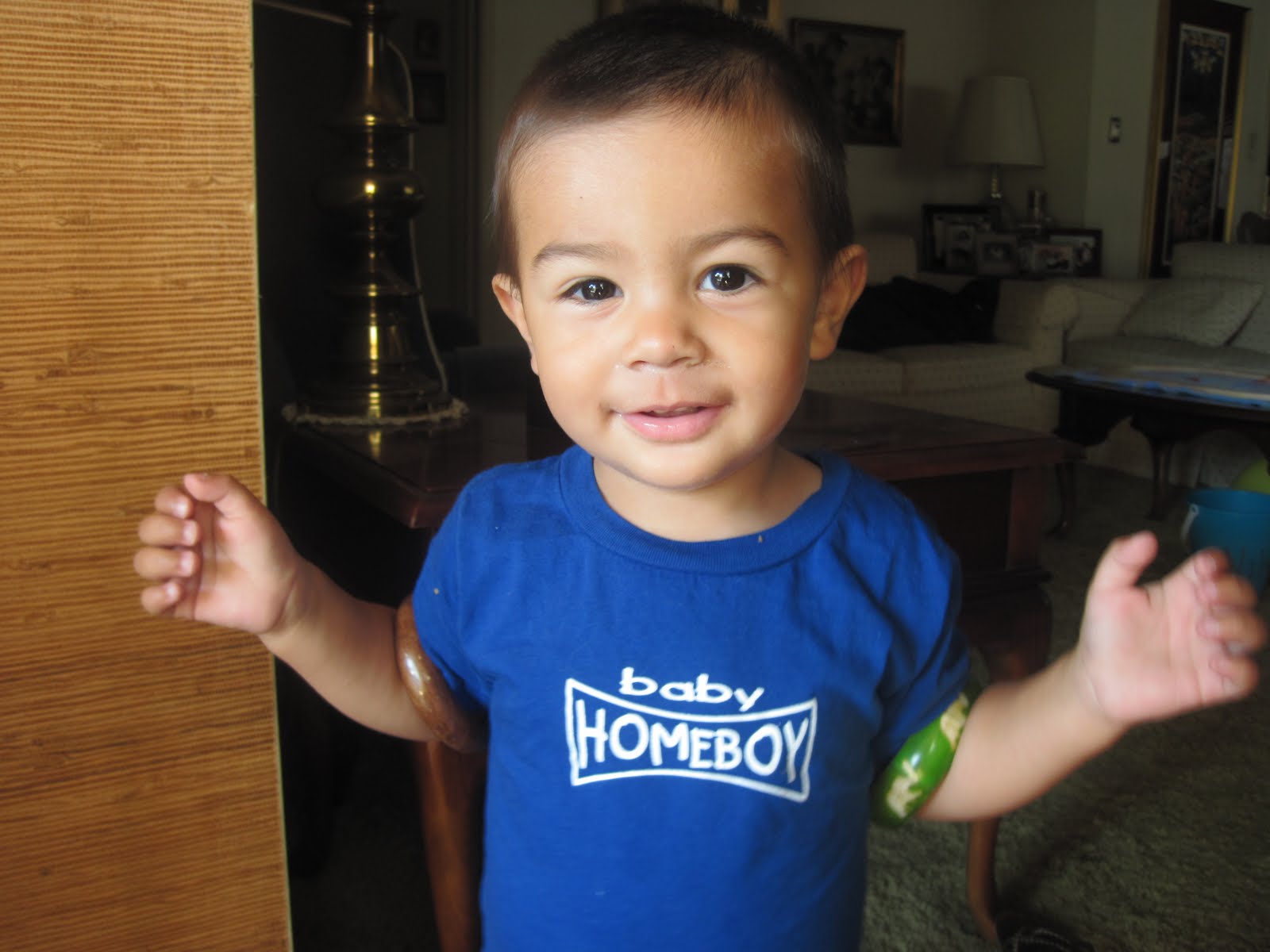 My little Baby Homeboy stole my bangle bracelets. His shirt is from